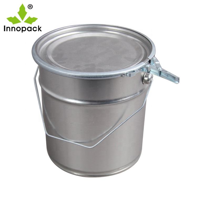 5L สีโลหะที่ว่างเปล่าถังที่มีฝาปิดแหวนล็อค