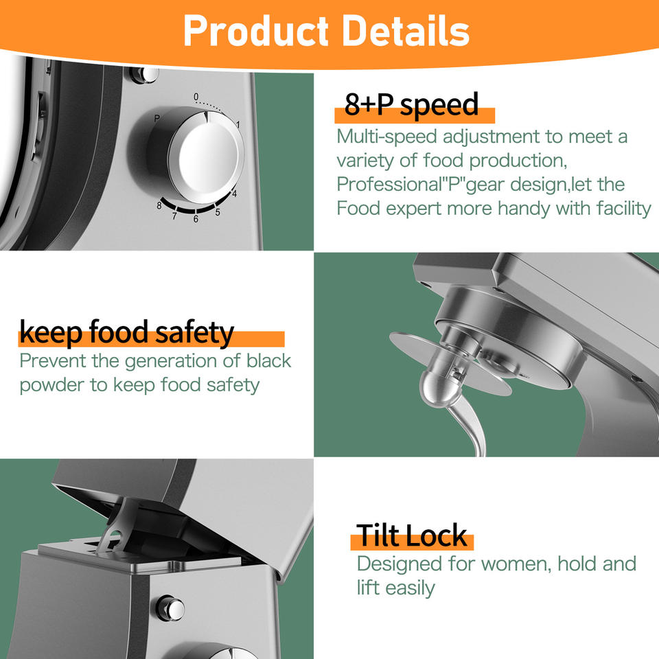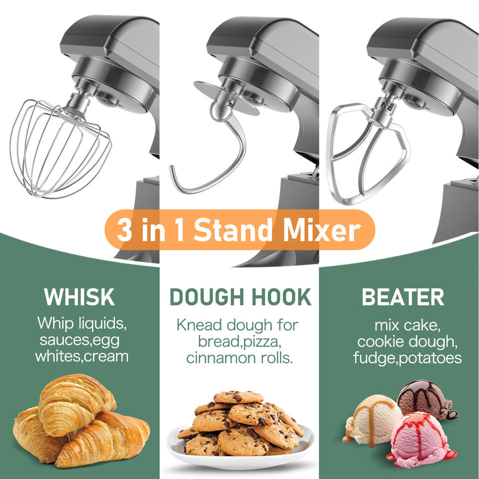 เครื่องผสมอาหารไฟฟ้าแบบตั้งพื้น 5 ลิตร ดีไซน์ยกโถ 3-in-1 วัสดุสแตนเลส กำลังไฟ 1300 วัตต์ ประหยัดพลังงานระดับ 6 ระดับความเร็ว สำหรับนวดแป้ง