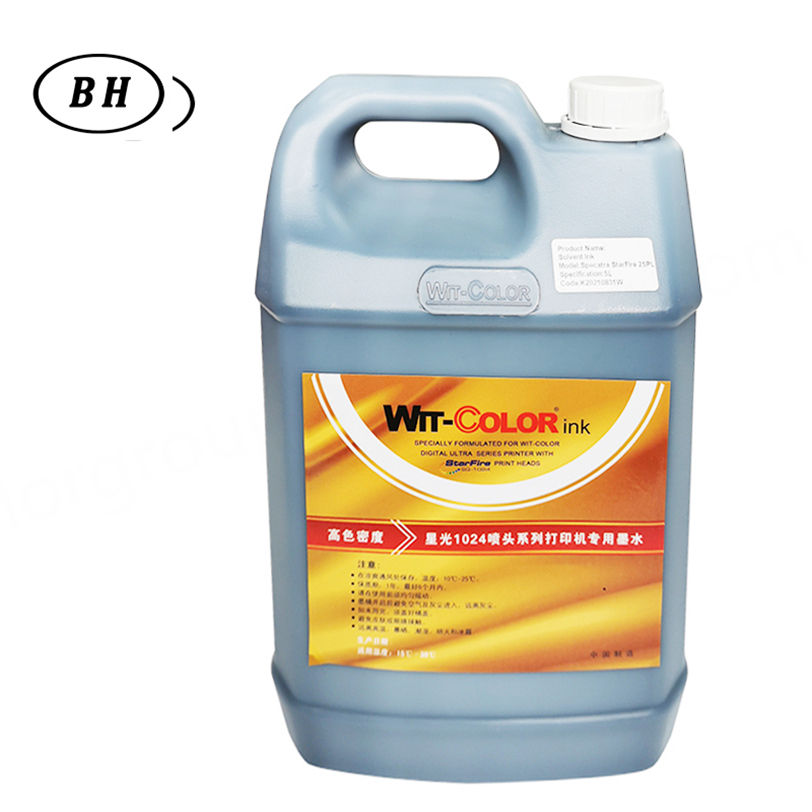 หมึกพิมพ์โซลเว้นท์ 5 ลิตร/ขวด ยี่ห้อ Flora/Gongzheng/witcolor รุ่น Starfire 1024 ขนาด 10 ไมครอน/25 ไมครอน สำหรับงานพิมพ์เฟล็กซ์