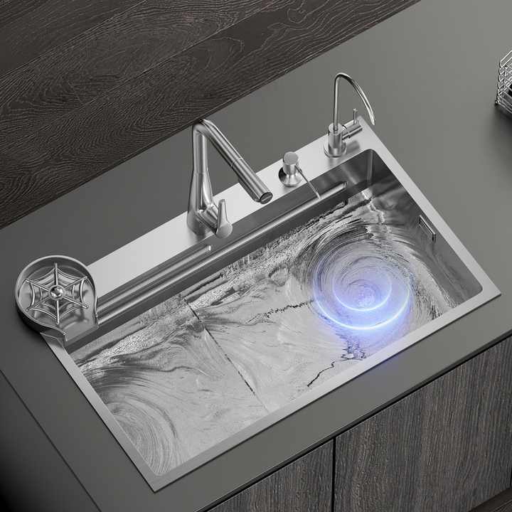 อ่างล้างจานครัวแบบอ่างเดี่ยวขนาดใหญ่ ผลิตจากสแตนเลส SUS304 หนา 5 มม. ป้องกันแบคทีเรีย ป้องกันรอยขีดข่วน ผลิตด้วยมือ