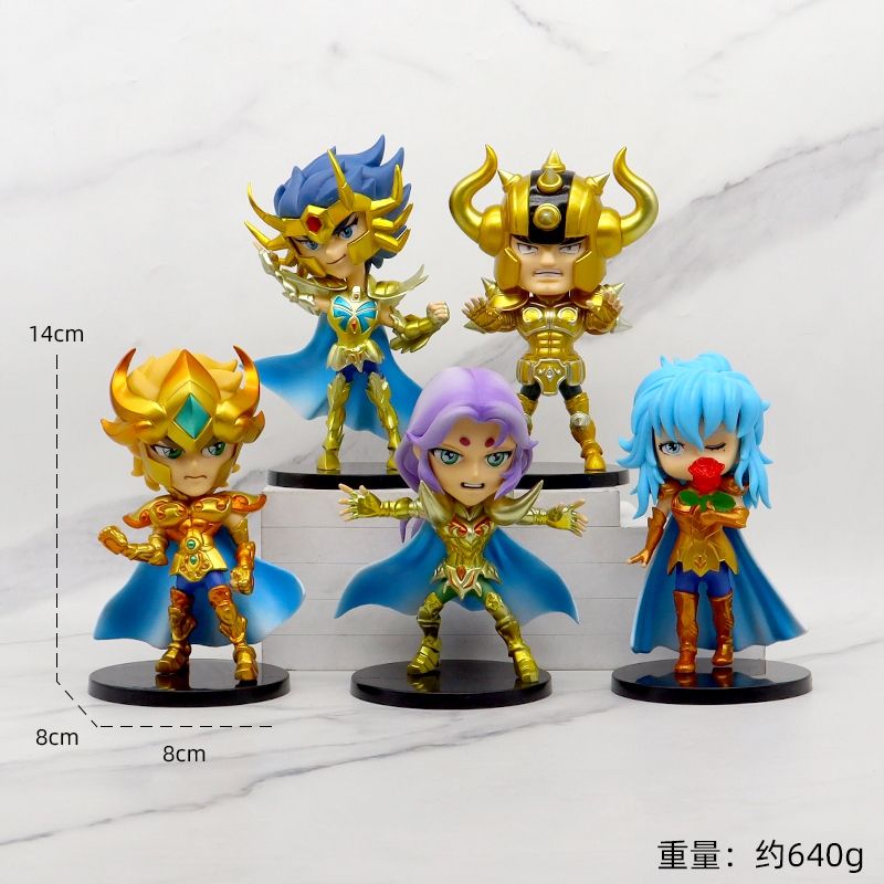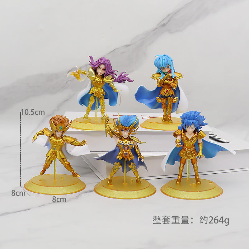 5ชิ้นหุ่น PVC ดีไซน์ใหม่รูปปั้นอนิเมะญี่ปุ่นสีทองเซนต์เซย์ย่าเครื่องประดับของเล่นสะสมหุ่นแอ็กชัน5ชิ้น