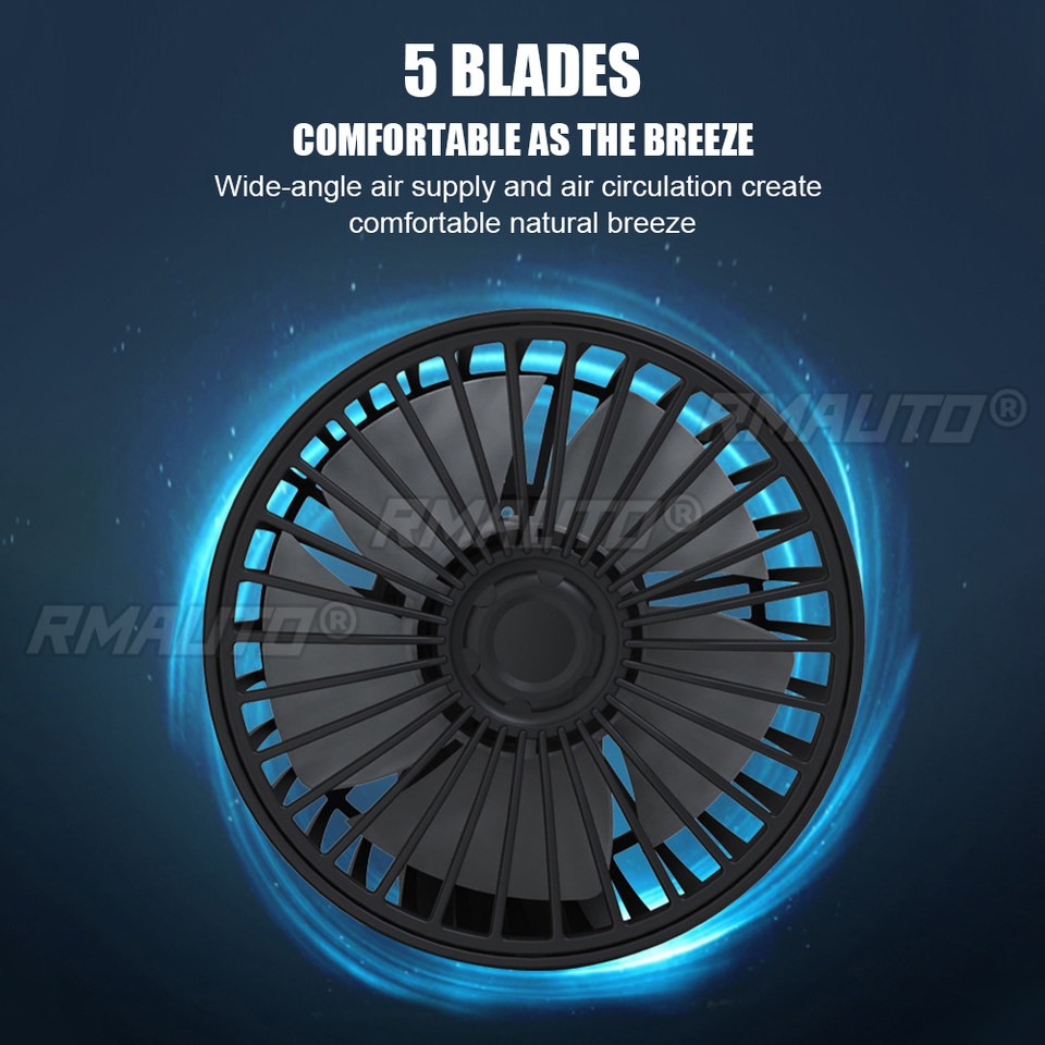 พัดลมระบายความร้อนในรถยนต์แบบสองหัว USB 5V ปรับความเร็วได้ 2 ระดับ ขนาดเล็ก ใบพัดห้าใบ ลมแรง