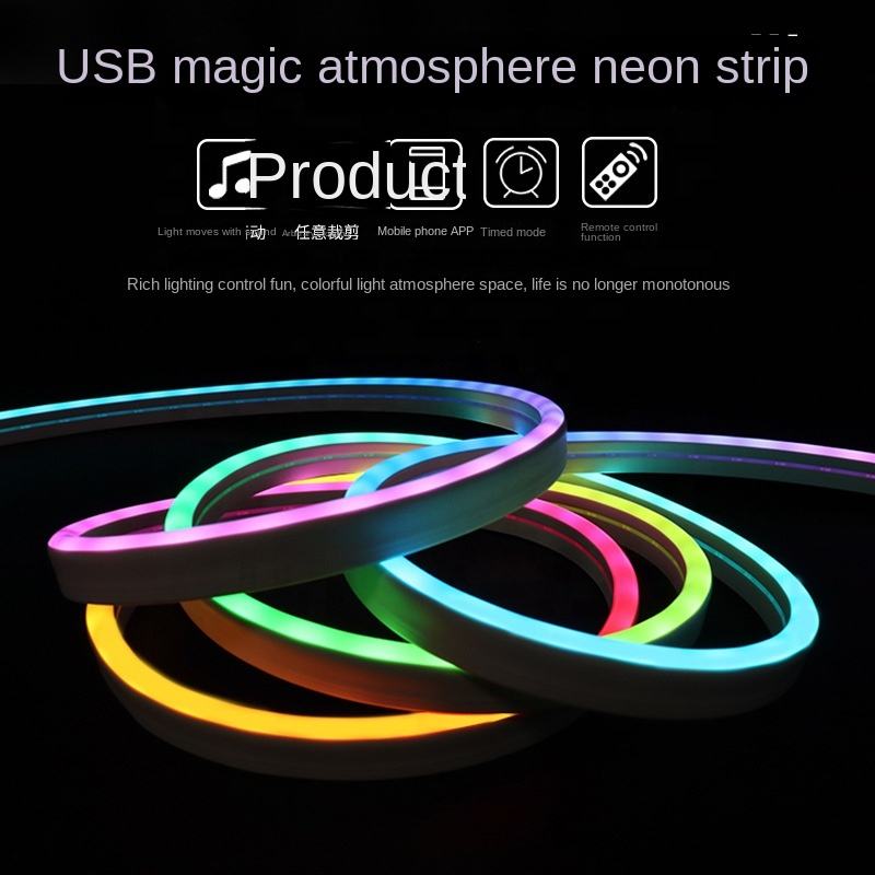 สาย USB 5V สำหรับเล่นดนตรีผ่านบลูทูธ, มีไฟ LED IP65ไฟ LED ควบคุมด้วยแอปอัจฉริยะสีนีออนแสนง