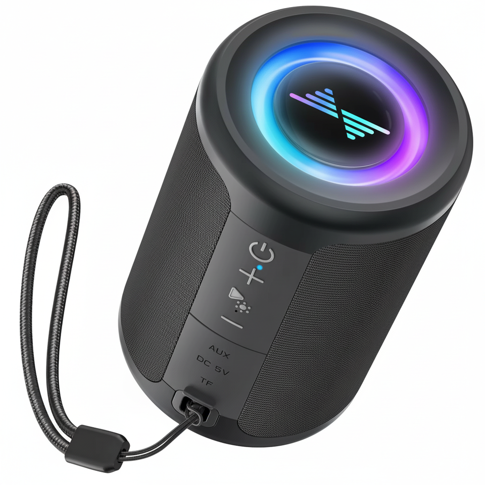 ลำโพงบลูทูธพกพา5W พร้อมไฟ LED สีสันสดใสเสียงสเตอริโอ TWS การ์ดสนับสนุนประเภท C AUX/TF และเล่นได้12ชั่วโมง