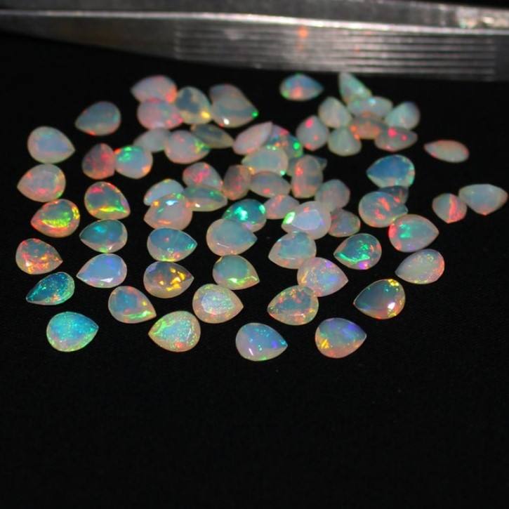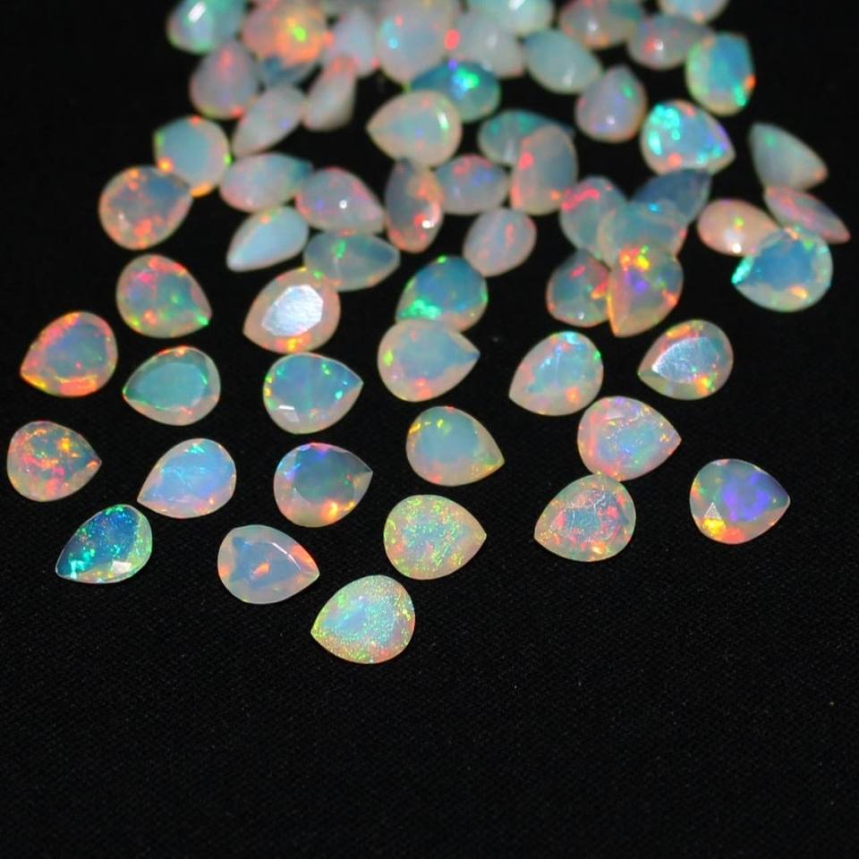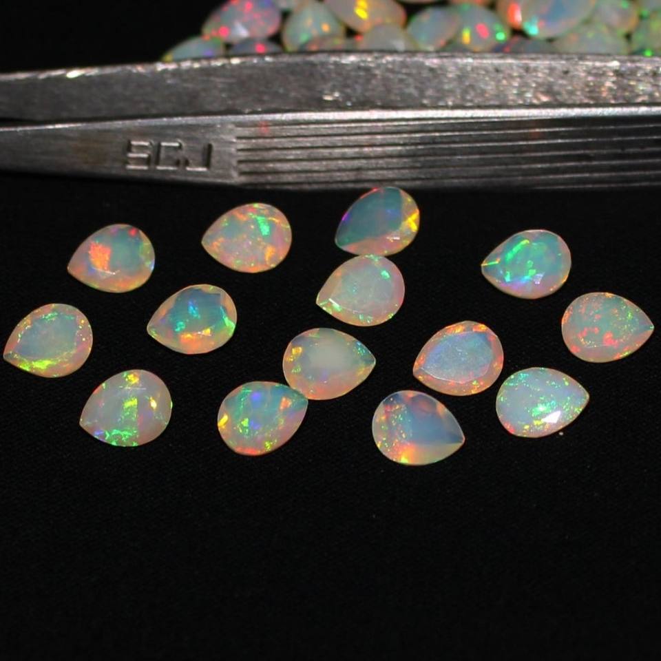 พลอยโอปอลเอธิโอเปียธรรมชาติทรงลูกแพร์ขนาด 5x7 มม. คุณภาพสูง A.A.A ขัดเงาอย่างดี สีผสมสวยงาม ได้รับการรับรองจาก IGI