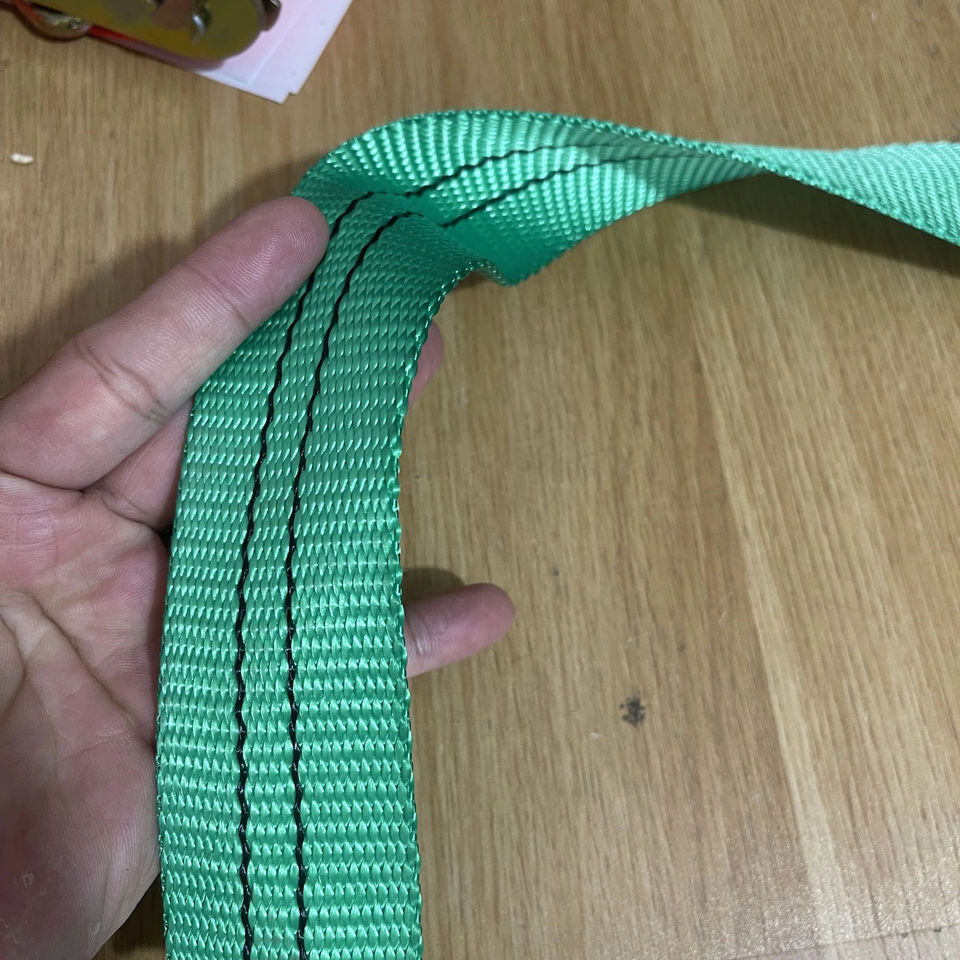 สายรัดโพลีเอสเตอร์ลายทางสีน้ำเงินขนาด 5 ซม. รับน้ำหนักได้ 4 ตัน สายรัดสินค้าสำหรับงานหนัก ความแข็งแรงสูง สำหรับงานอุตสาหกรรม ยี่ห้อ SANBOO