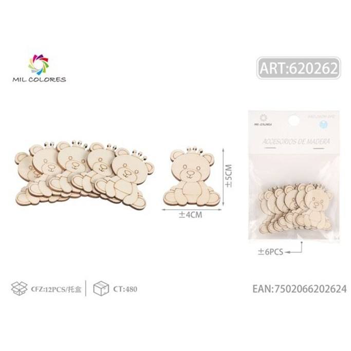 5cm Folk Art Wooden Discs Accessories Pine Wood Bear Engraving Slices Baby Milestone Card with Model Pattern 6pc/card