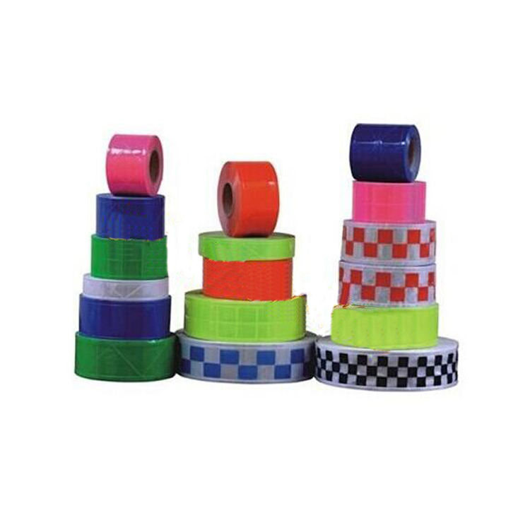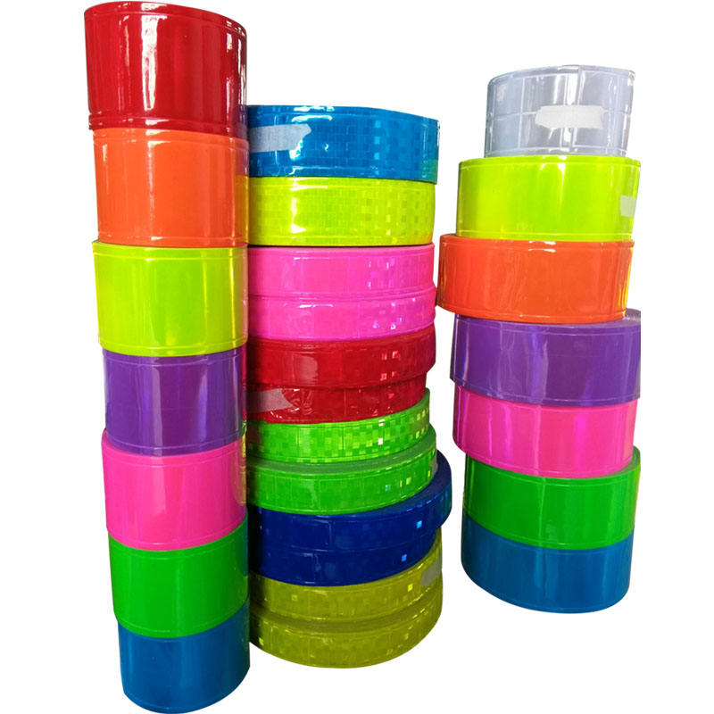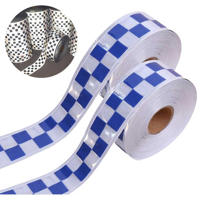 เทปแถบสะท้อนแสง PVC ลายตารางขนาด 5 ซม. สำหรับเย็บติดเสื้อผ้าเพื่อความปลอดภัย ชุดยูนิฟอร์ม และกางเกง