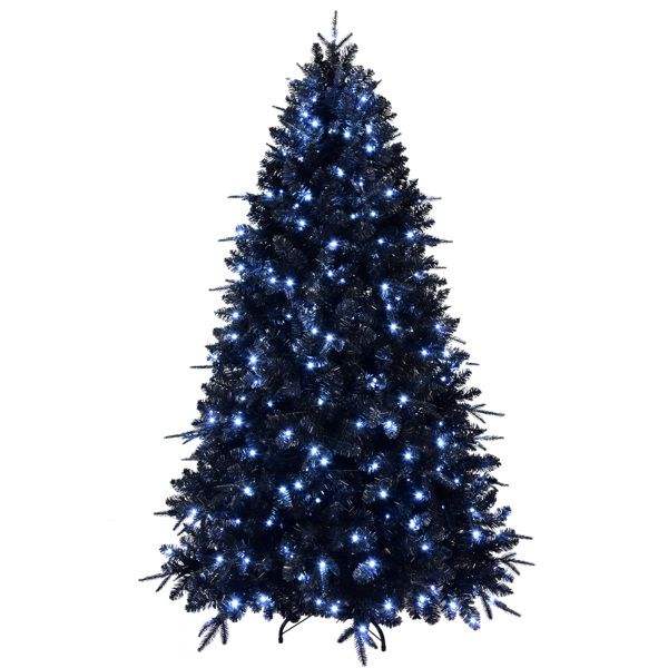 ต้นคริสต์มาสประดิษฐ์สีดำขนาด 5 ฟุต พร้อมไฟ LED สีขาว 250 ดวง 1076 จุด ทำจากวัสดุ PE+PVC พร้อมขาตั้งแบบพับได้ สำหรับตกแต่งวันฮาโลวีน
