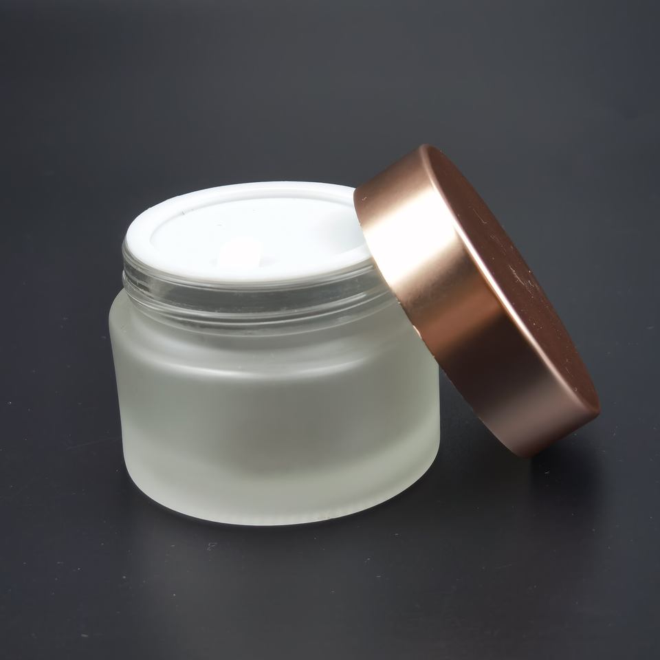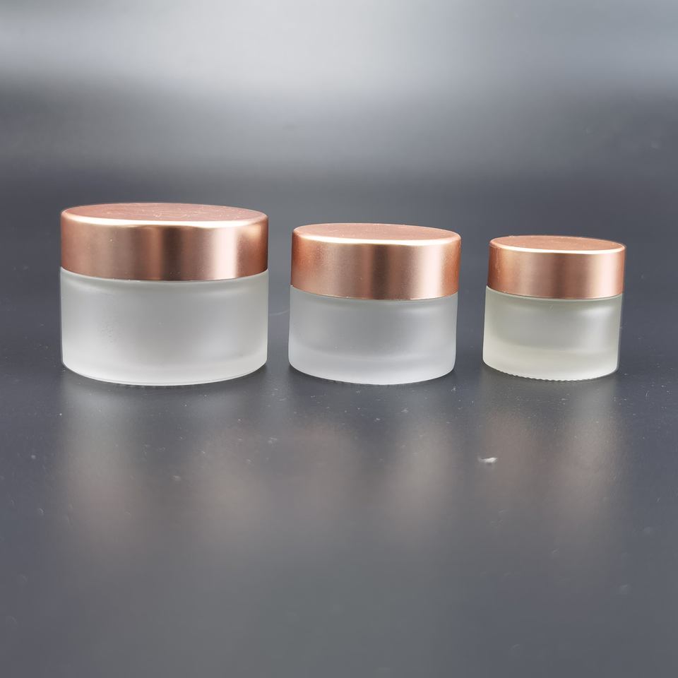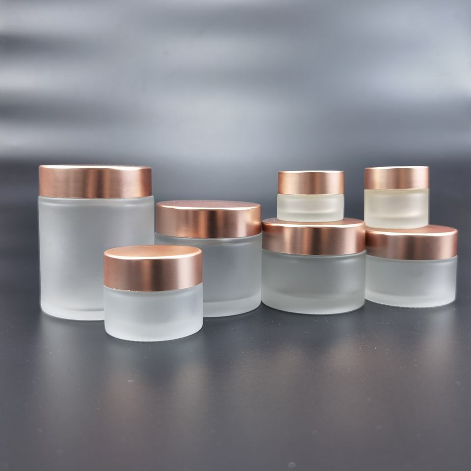 ขวดแก้วเนื้อแมทใสสำหรับครีมทาหน้า ครีมทาตา สครับขัดผิว บัตเตอร์ ขนาด 5 กรัม 10 กรัม 15 กรัม 20 กรัม 30 กรัม 50 กรัม 100 กรัม พร้อมฝาสีโรสโกลด์