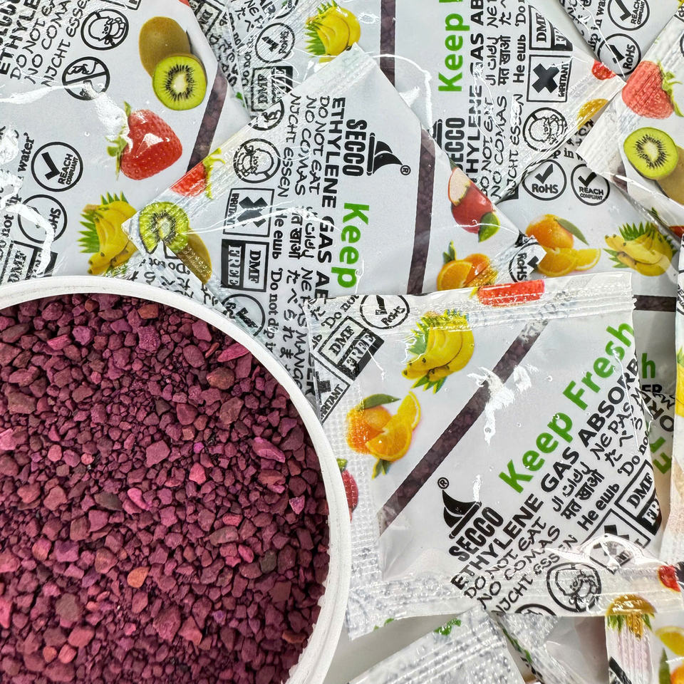 5กรัม Secco ดูดซับเอทิลีนเก็บผลไม้สดรักษาสุกช้าสำหรับการส่งออกสตรอเบอร์รี่กล้วย avocadoes มะม่วง
