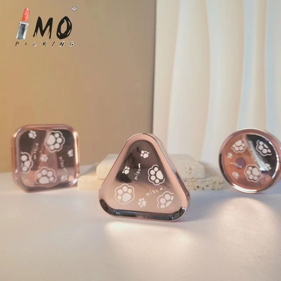 พาเลทอายแชโดว์ขนาดเล็ก5ก. ทรงสี่เหลี่ยมสามเหลี่ยมและกลมมีดีไซน์ตีนแมวบรรจุภัณฑ์เครื่องสำอางสีโรสโกลด์ทันสมัย
