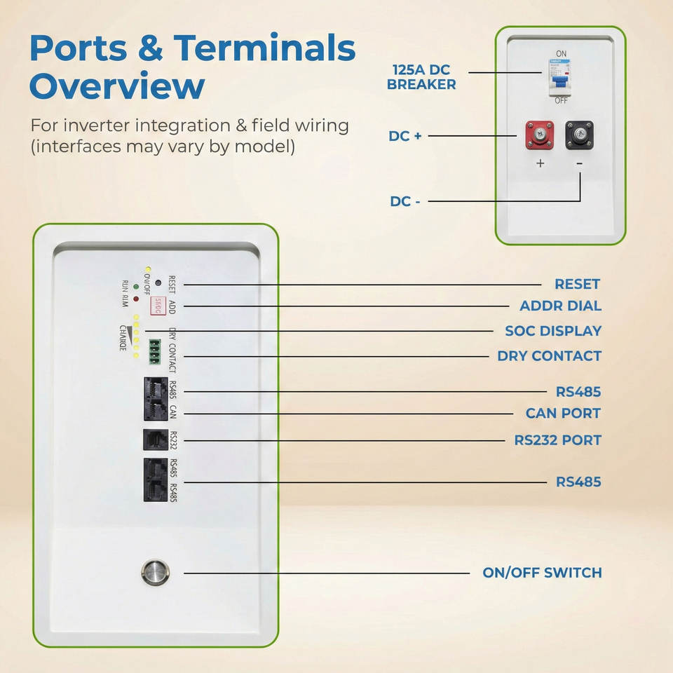 ตู้แบตเตอรี่5kWh 51.2V ESS LiFePO4บ้านสำรองพลังงานแสงอาทิตย์แบตเตอรี่จอแอลซีดีปุ่มสามารถ RS485 IP55คู่ขนาน