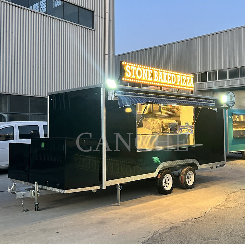 5m Black square Mobile Bbq Stocked Food Trailers Fully Equipped Food Trailer for Sale