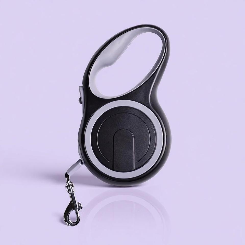 สายจูงสุนัขแบบยืดหดได้ 5 เมตร สีเทา-ดำ ดีไซน์หรูหราสไตล์ตะวันตก ปรับแต่งได้ เป็นมิตรกับสิ่งแวดล้อม ทนทาน ปลดเร็ว รองรับน้ำหนักสุนัขได้ถึง 50 กก.