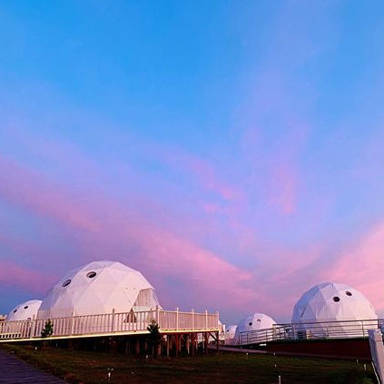 เต็นท์โรงแรมทรงโดมหรูหราทันสมัย5ม. ทำจาก PVC สำเร็จรูปพร้อมหน้าต่างแดดและห้องน้ำดีไซน์แบบ geodesic หรูหรา
