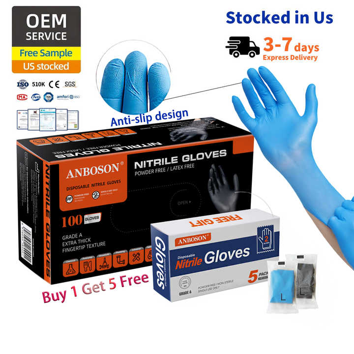 ถุงมือไนไตรล์แบบใช้แล้วทิ้ง 5 มิล พร้อมการปกป้องแบบหนัก 4 กรัม บรรจุภัณฑ์แบบกำหนดเอง สำหรับห้องปฏิบัติการและการทำความสะอาด