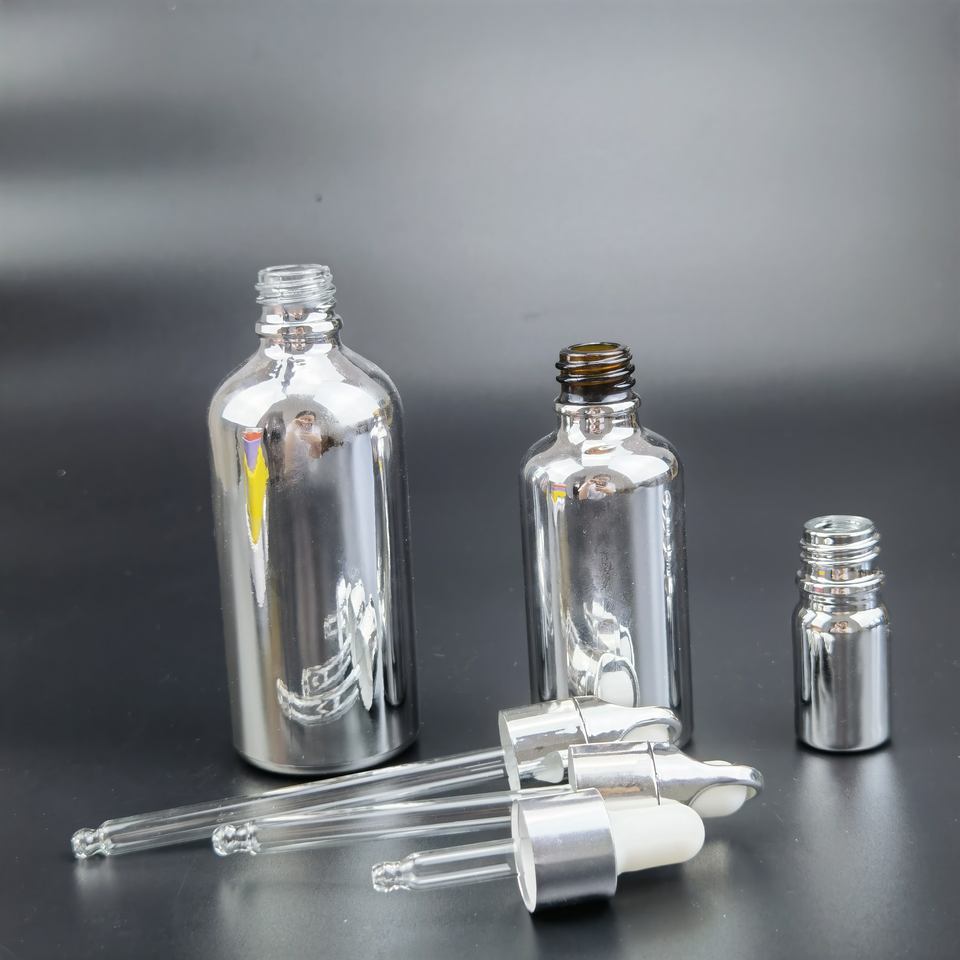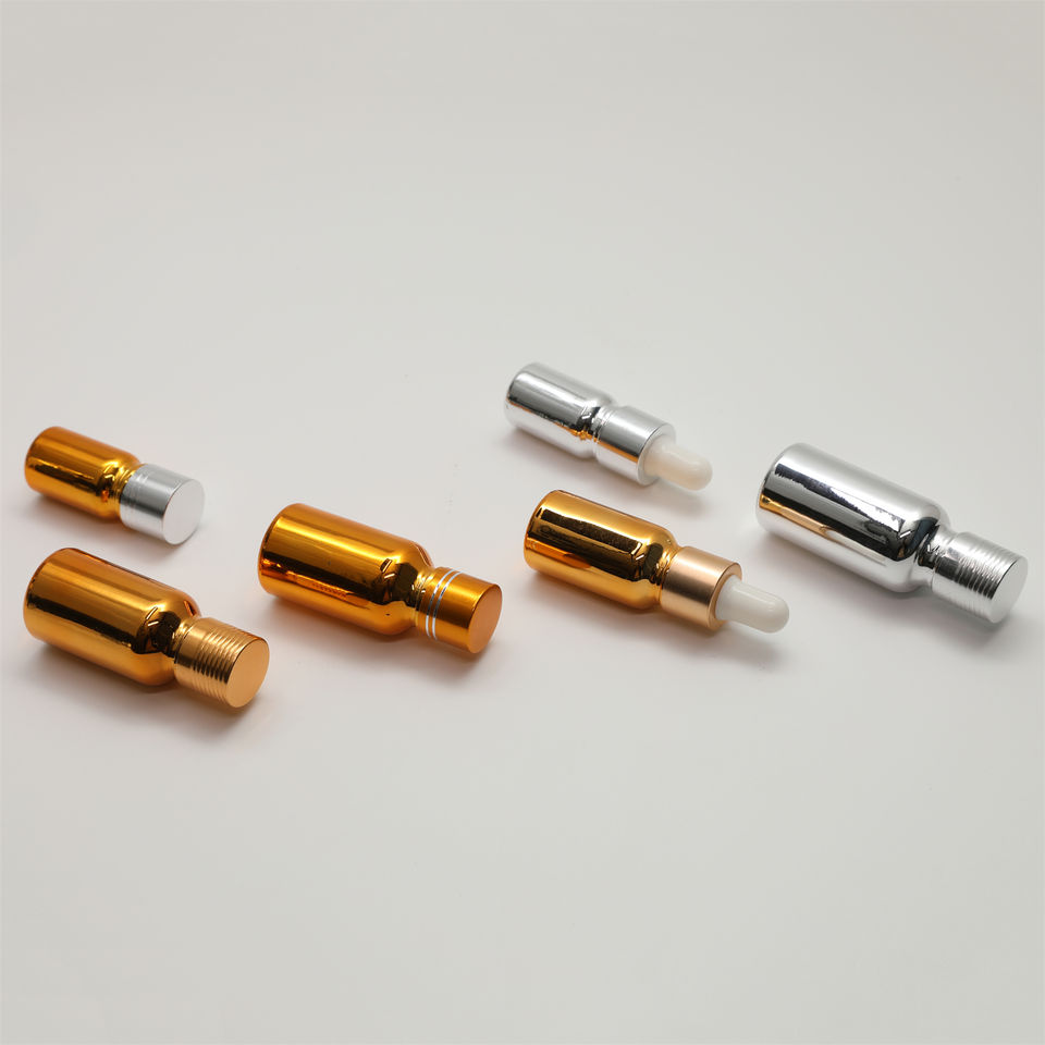ขวดแก้วหยดน้ำมันหอมระเหยขนาด 5 มล. 10 มล. 15 มล. 30 มล. 50 มล. 60 มล. 100 มล. ชุบเงินชุบทอง พร้อมฝาปิดแบบตะกร้า