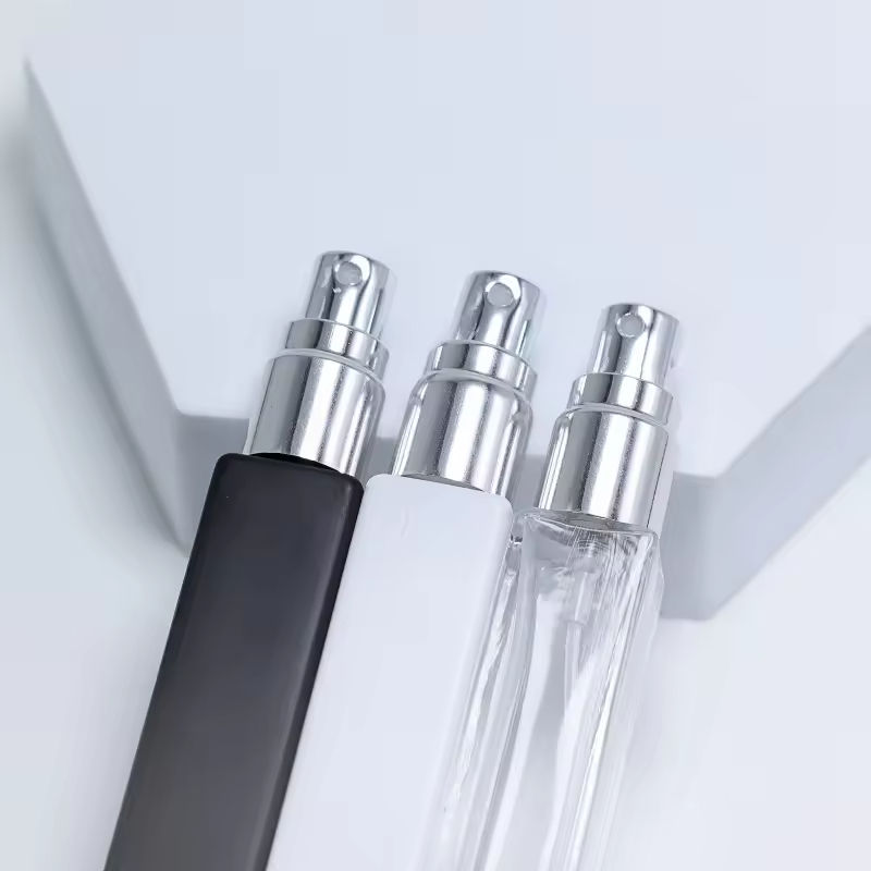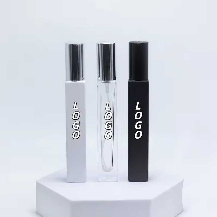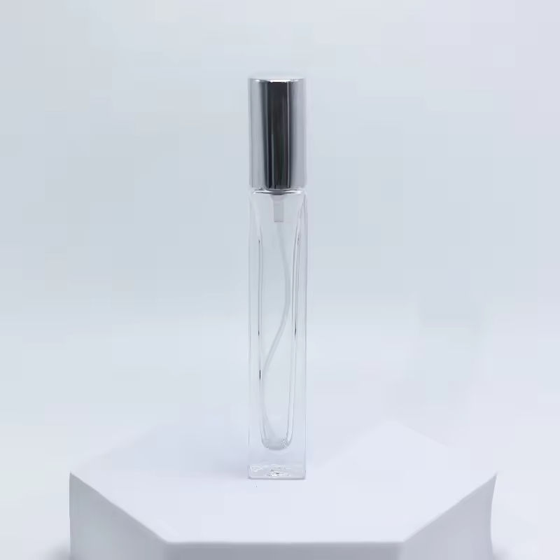 ขวดแก้วสี่เหลี่ยมขนาด 5 มล. 10 มล. 15 มล. ขวดเปล่าสำหรับน้ำหอมและน้ำมันหอมระเหย ขวดสเปรย์พร้อมฝาสีทองเงินเงา