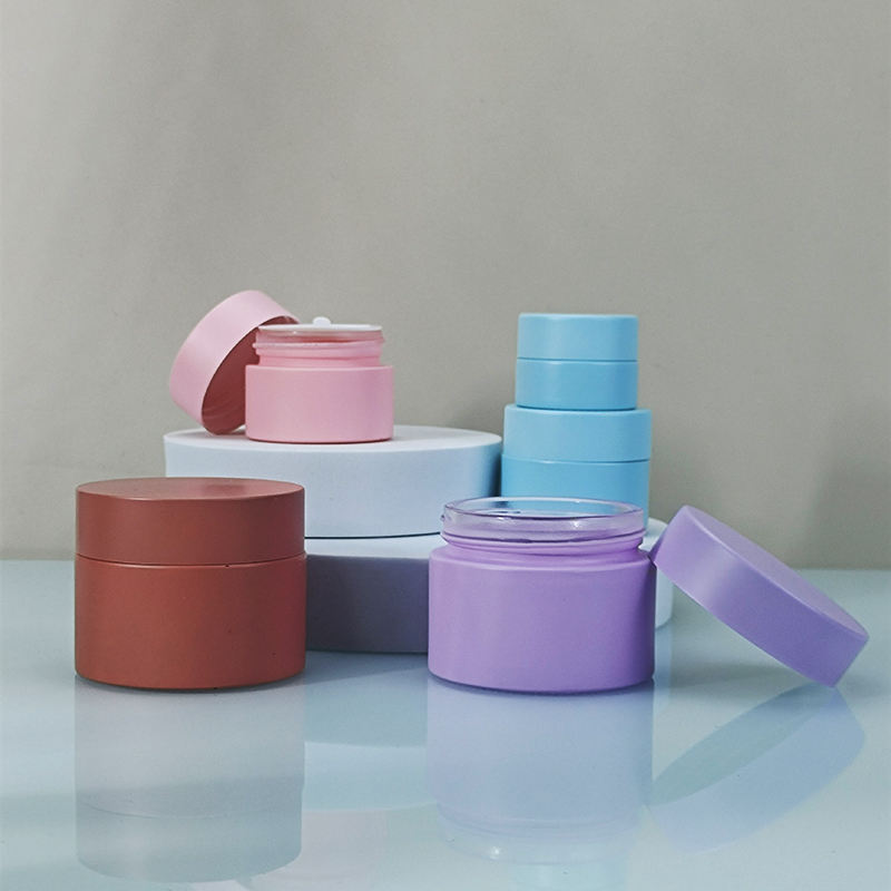 ขวดแก้วฝ้าสำหรับครีมบำรุงผิว ขนาด 5 มล. 10 มล. 30 มล. 50 มล. 100 มล. บรรจุภัณฑ์สำหรับเครื่องสำอาง ขวดแก้วเครื่องสำอางพร้อมฝาปิด