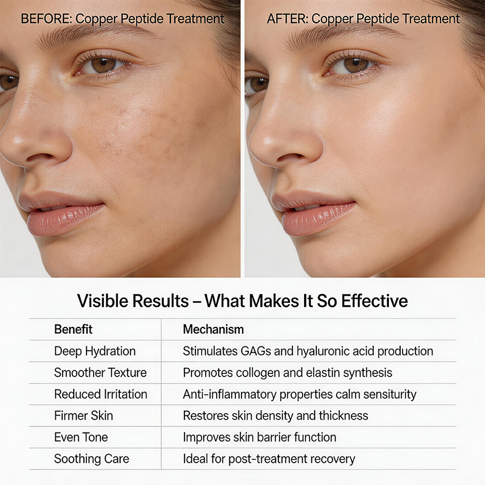เปปไทด์ GHK-Cu ทองแดง: ส่งเสริมการซ่อมแซมและฟื้นฟูผิวหนัง ลดความชัดเจนของริ้วรอยและความแห้งกร้าน