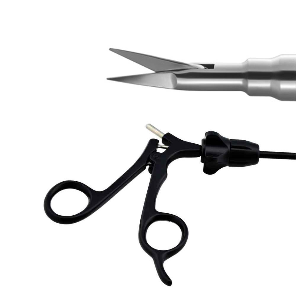 กรรไกรผ่าตัดแบบส่องกล้องขนาด 5 มม. 330 มม. ทำจากสแตนเลสสตีล ใช้ซ้ำได้ สำหรับการฝึกผ่าตัด พร้อมใบรับรอง CE