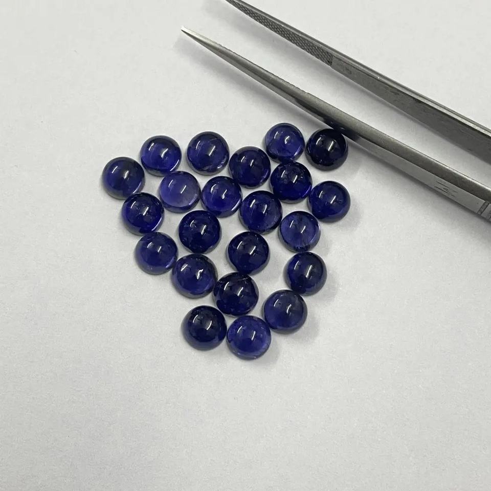 5มม. AAA อัญมณีทรงกลมไอโอไลต์สีฟ้าธรรมชาติทรงโดม Cabochon flatback เครื่องประดับพร้อมที่จะซื้อศุลกากรจัดส่งฟรี