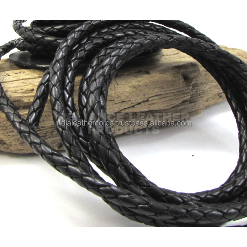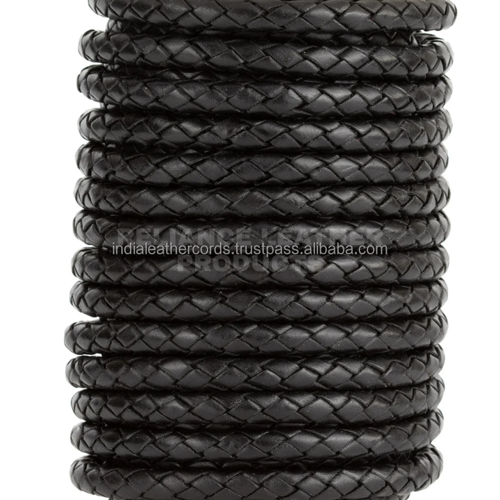 เชือกหนังถักแท้สีดำเงาขนาด 5 มม. หลากสีสัน สำหรับงานเครื่องประดับมืออาชีพ