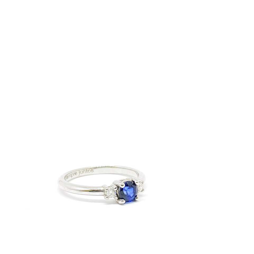 5มม. ตัดไพลินสีฟ้าสามหินแหวนหมั้นเงินสเตอร์ลิงชุบทอง18K เครื่องประดับแต่งงานที่เรียบง่ายสำหรับ