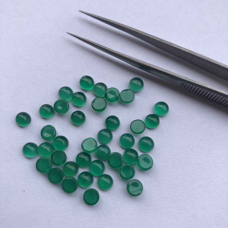 นิลสีเขียวธรรมชาติ 5 มม. ทรงกลมหลังแบนหลวมปรับเทียบผู้จัดจําหน่าย Cabochon ในราคาโรงงานหินสําหรับเครื่องประดับทําร้านค้าออนไลน์