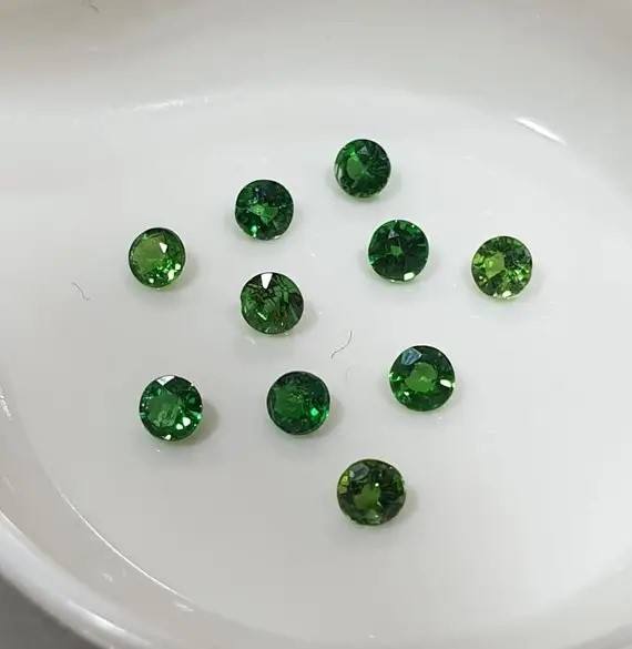 พลอยทัวร์มาลีนสีเขียวธรรมชาติขนาด5มม. อัญมณีทรงหลวมแบบกลมสำหรับการตั้งค่าเครื่องประดับงานตามสั่ง