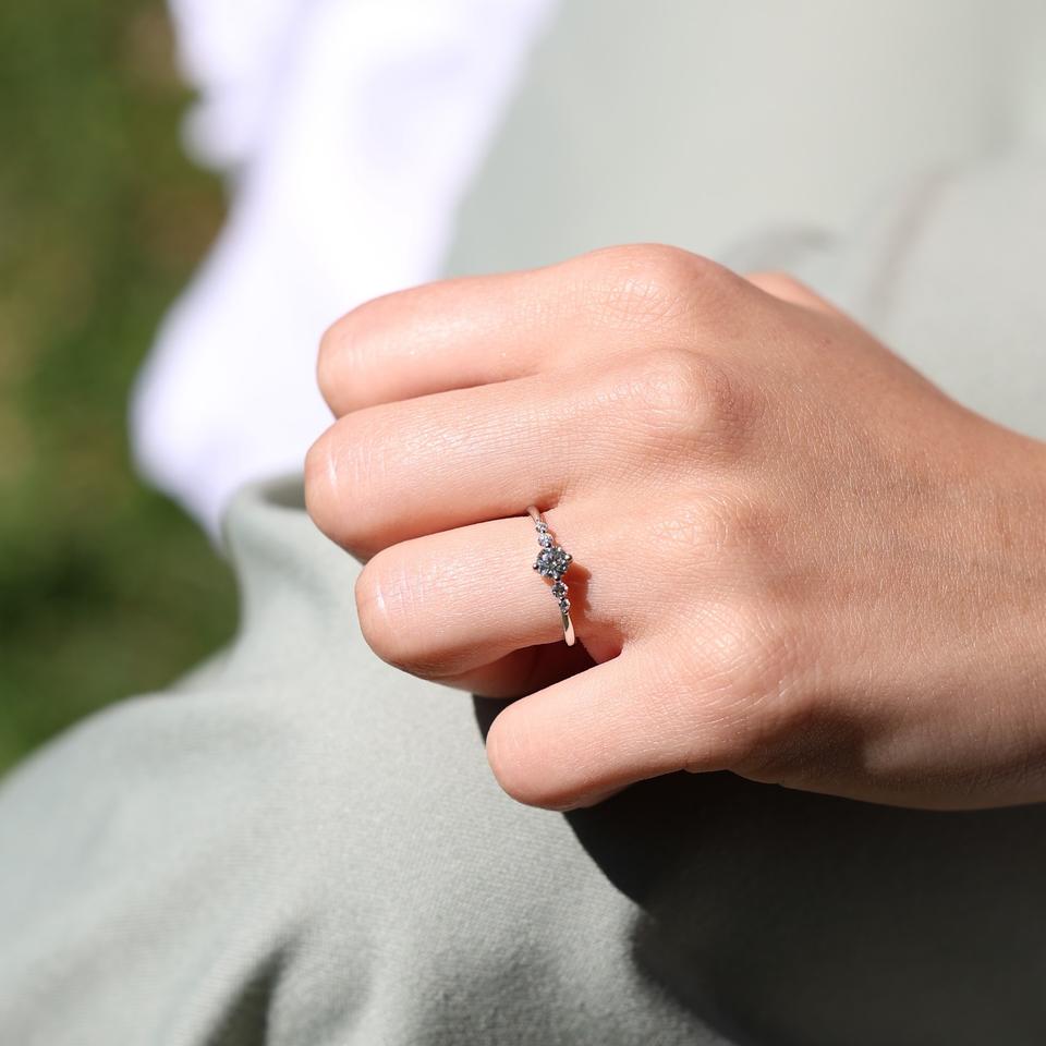 แหวนหมั้นเพชรสีขาว5มม. แหวนเพชรเดี่ยวด้านข้างเงินแท้18K วงชุบทองสำหรับเจ้าสาว