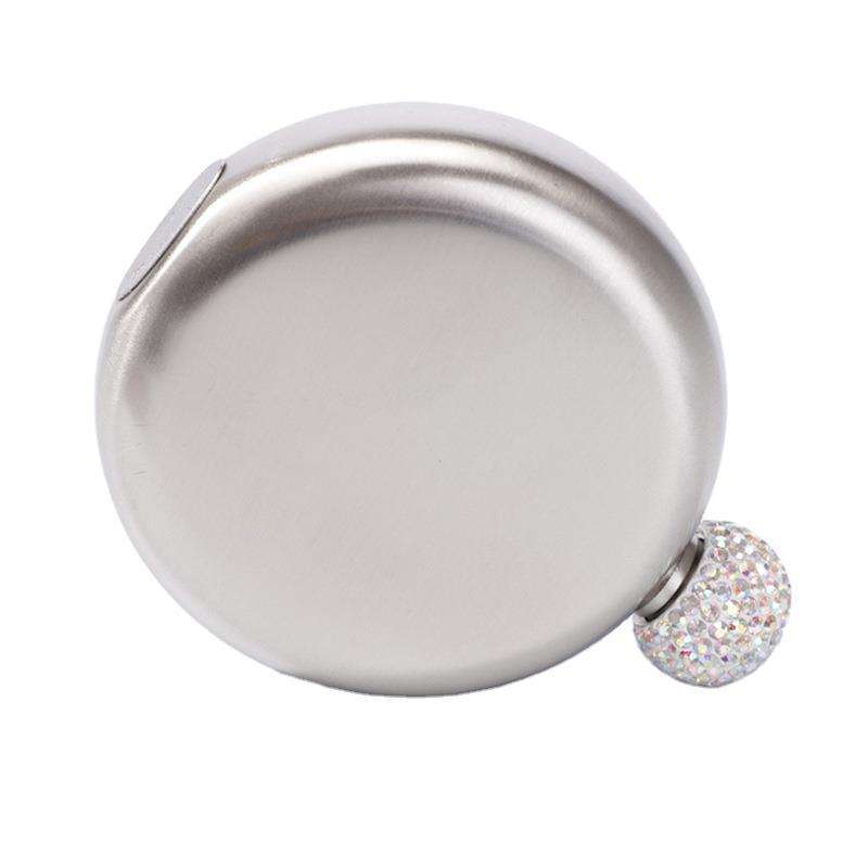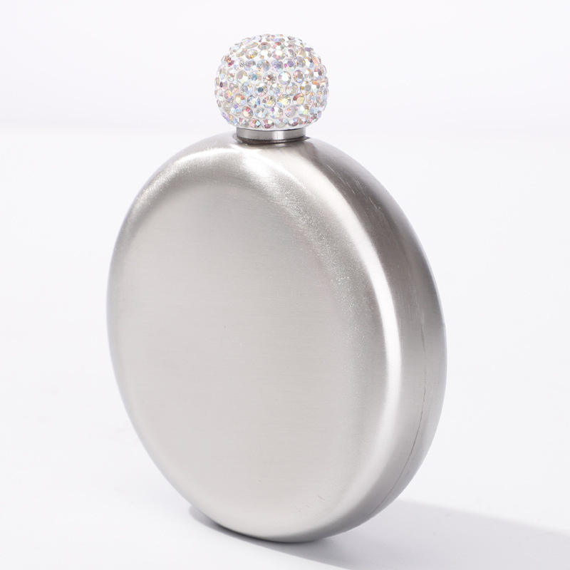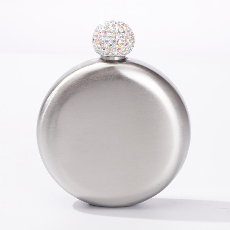 กระติกน้ำพกพาขนาดเล็ก5ออนซ์สแตนเลสพร้อมฝาปิดเพชรดีไซน์วงกลมสำหรับไวน์ในระหว่างการเดินทางขายส่งเป็นของขวัญ