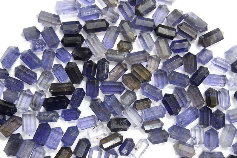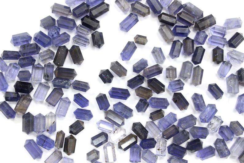 พลอยไอโอไลต์ธรรมชาติเกรด AAA 5 เม็ด สีน้ำเงินทรงดินสอเหลี่ยมเพชรพลอยสองหัว รูปทรงบริโอเล็ตแบบหลวมๆ ระยิบระยับ คุณภาพจากผู้ผลิตอิสระ