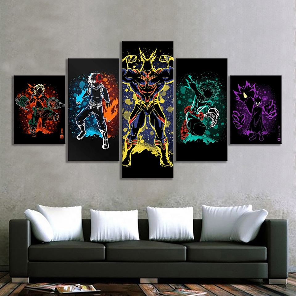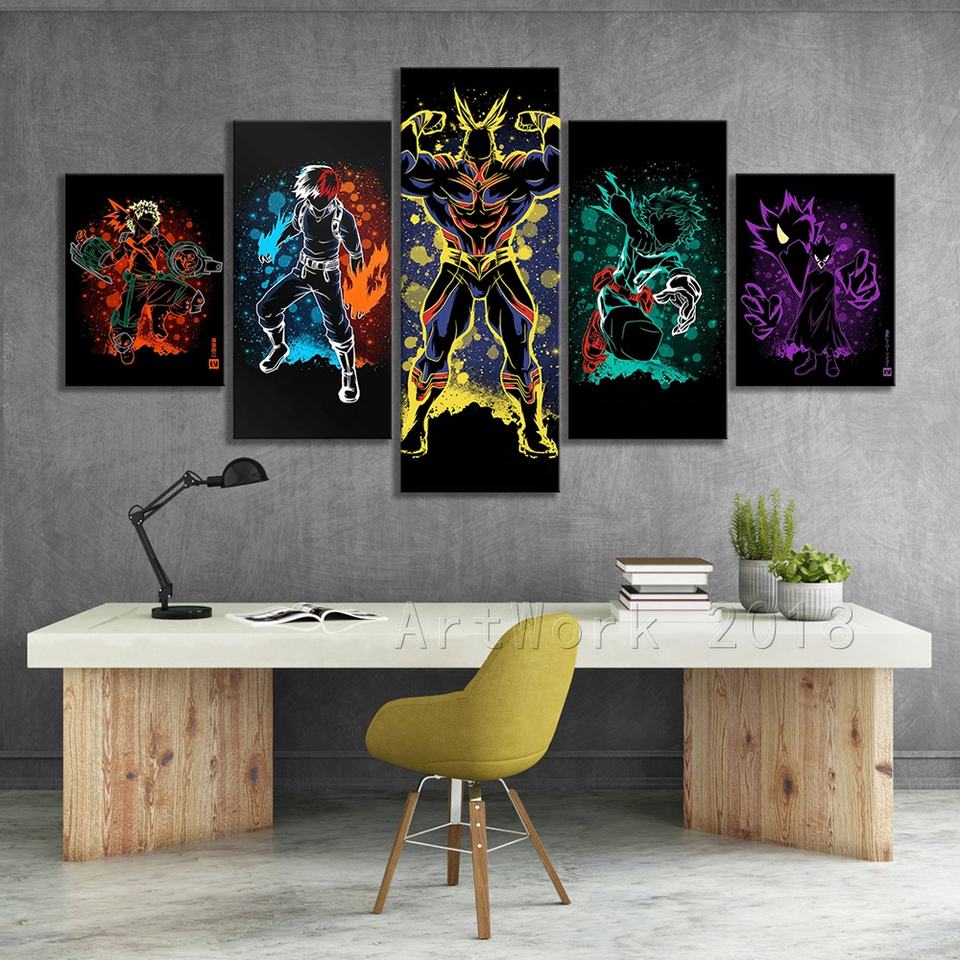 5pcs Boku No Hero Academia Anime Poster Abstract Wall Art Paintings My Hero Academia Comics Art Wall Decor Painting