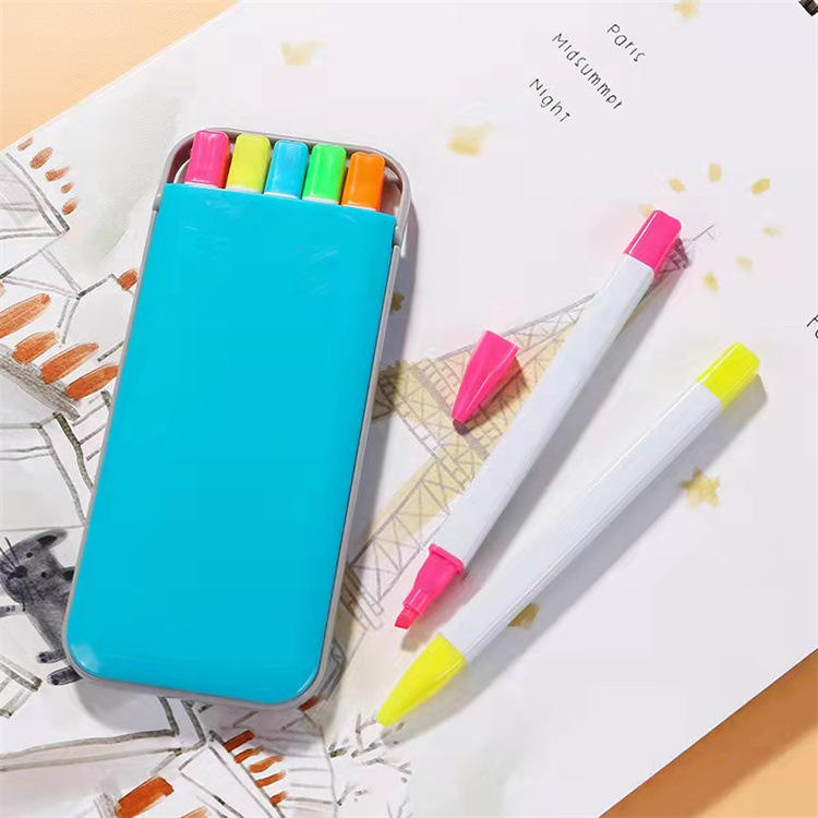 ชุดปากกาเน้นข้อความ5ชิ้น/กล่องชุดปากกาลูกลื่นสำหรับเด็กเครื่องเขียนปากกาเน้นข้อความเรืองแสงสี