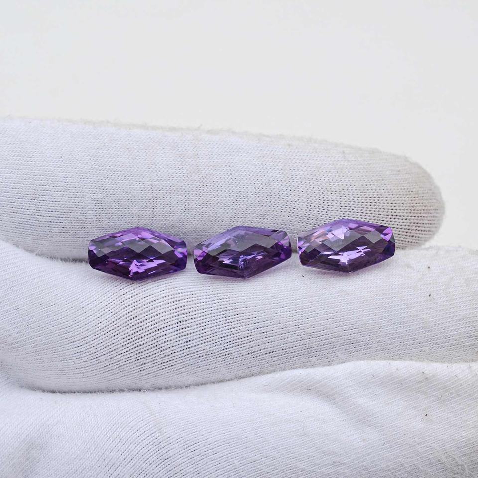 พลอยอะเมทิสต์แอฟริกันธรรมชาติแบบ5x10mm-9x18mm เพชรพลอยยาวทรงหกเหลี่ยมเจียระไนแบบหลวมรักษาอัญมณีคริสตัลสำหรับทำเครื่องประดับ
