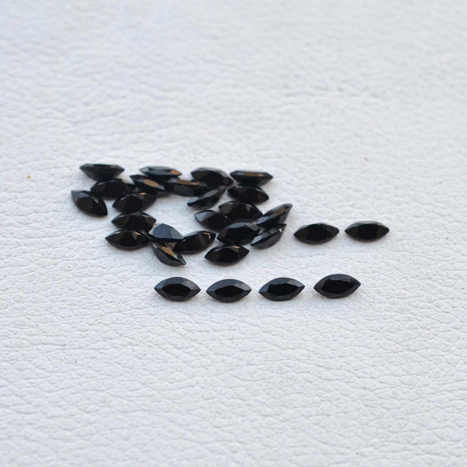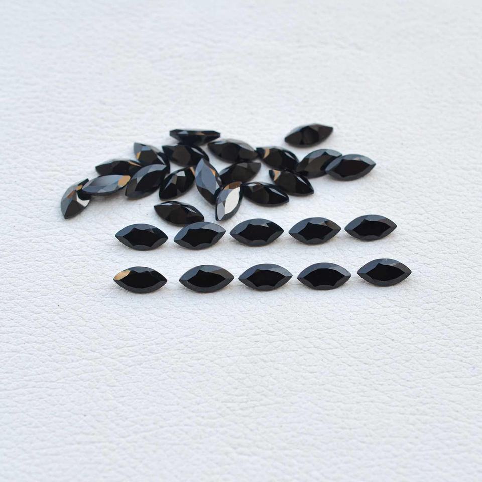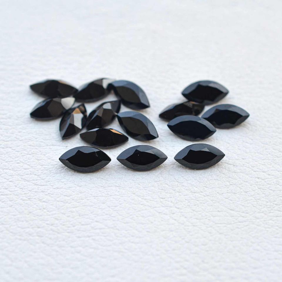 พลอยออนิกซ์สีดำธรรมชาติทรงมาร์ควิสขนาด 5x10 มม. เจียระไนแบบเหลี่ยม สามารถปรับแต่งได้ ความเงางามดี นำเข้าโดยตรงจากผู้ผลิต