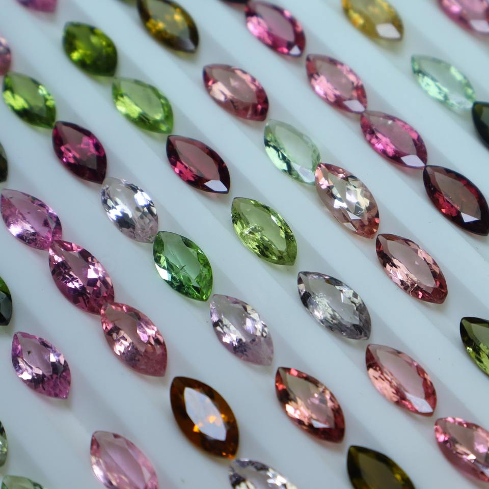 พลอยทัวร์มาลีนธรรมชาติขนาด5x10มม. ตัดเป็นพลอยขัดเงามีหลายสีสำหรับทำเครื่องประดับขายส่ง