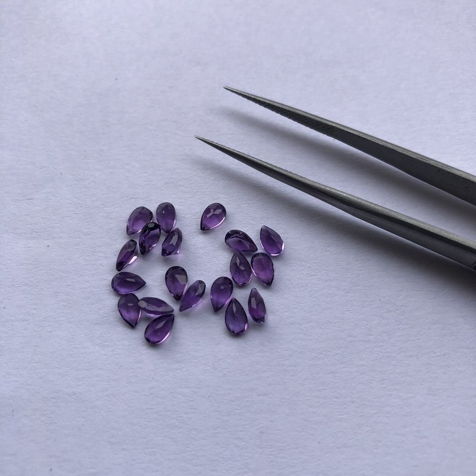 ลูกแพร์หินอเมทิสต์แอฟริกันธรรมชาติขนาด3มม. 4มม. 5มม. อัญมณีเจียระไนแบบหลวม