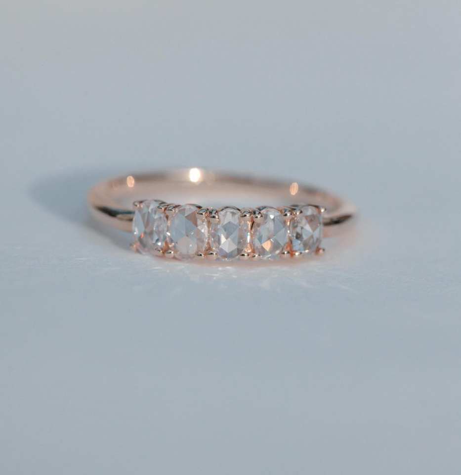 5x3มม. รูปไข่ CZ ครึ่งนิรันดร์แต่งงานวงสีโรสโกลด์