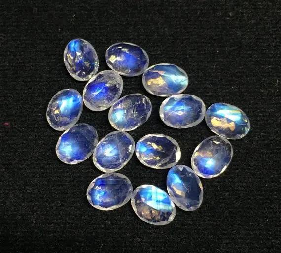 พลอยมูนสโตนสีรุ้งธรรมชาติ เจียระไนเหลี่ยมรูปไข่ แบบเม็ดเดี่ยว