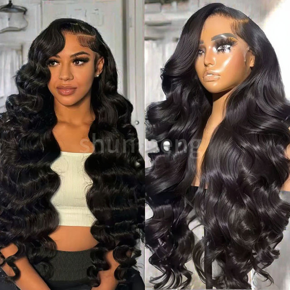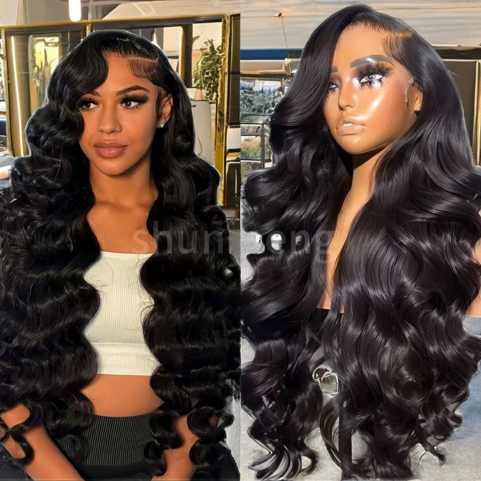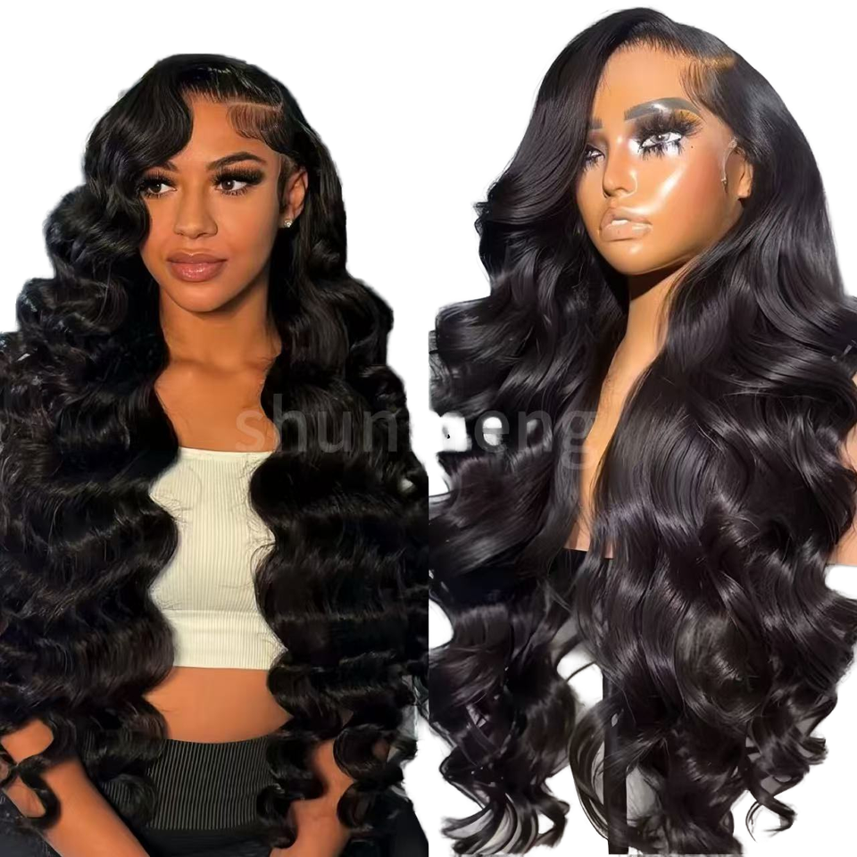 วิกผมแท้ยาวของผู้หญิงสีดำยาว5x5วิกผมด้านหน้าแบบลอนลึกสไตล์บราซิล