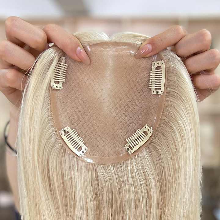 ท็อปเปอร์ผมไหมแท้ 5x5 ซม. ระบายอากาศได้ดี สวมใส่สบาย ติดคลิป สำหรับผมบาง