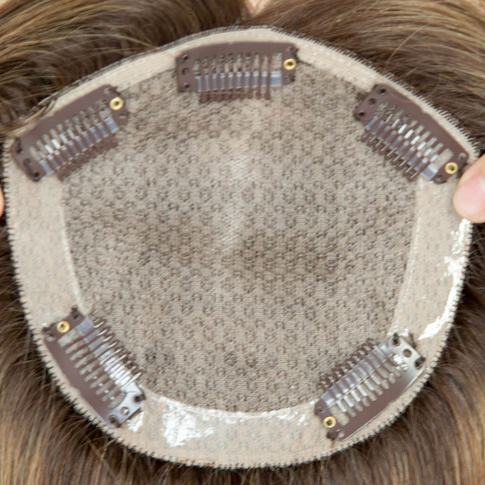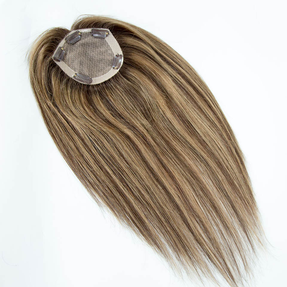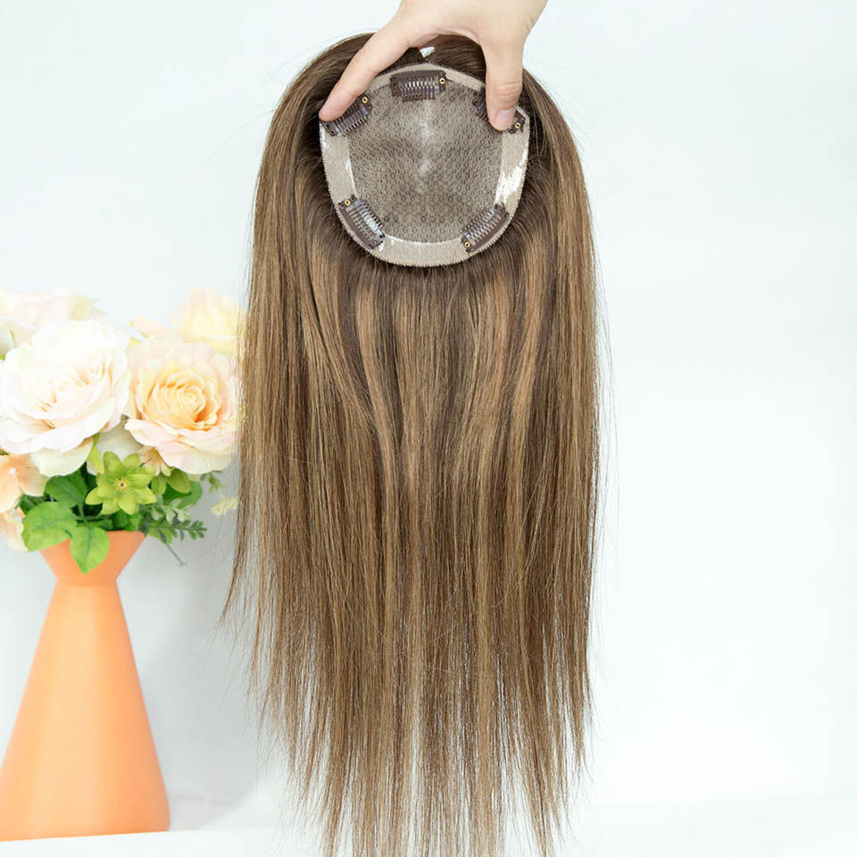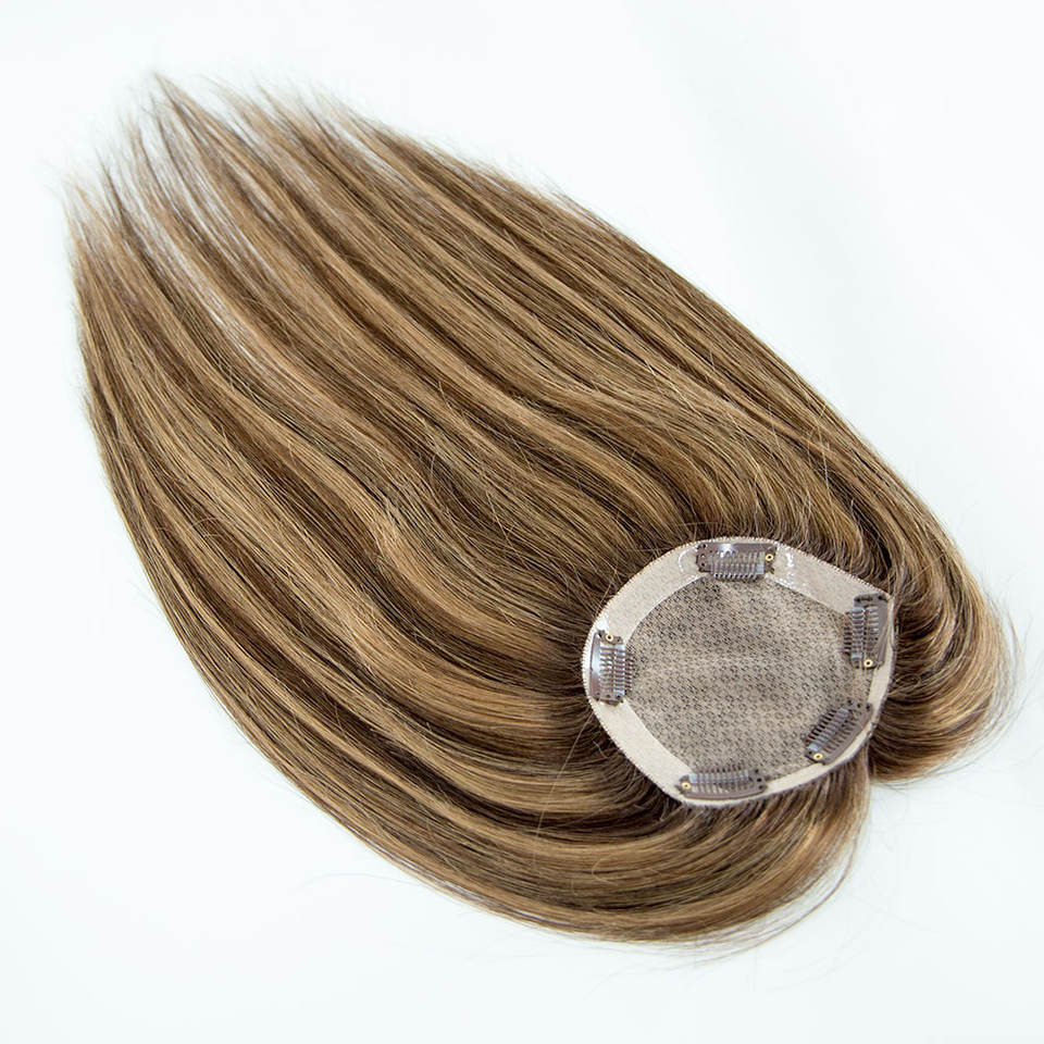 ท็อปเปอร์ผมแท้แบบไหม ขนาด 5x5 นิ้ว ขอบ PU สีน้ำตาลไล่เฉด ผมยุโรปแท้