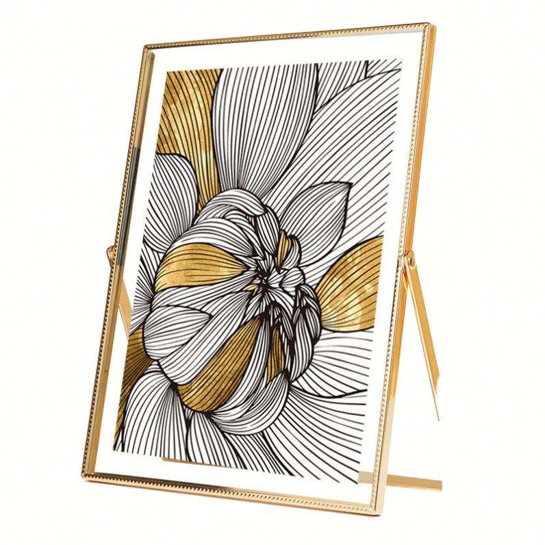 กรอบรูปโลหะสีทองขนาด 5x7 นิ้ว พร้อมฝาครอบอะคริลิกใสคุณภาพสูง สำหรับตกแต่งโต๊ะทำงานและโชว์รูปภาพ