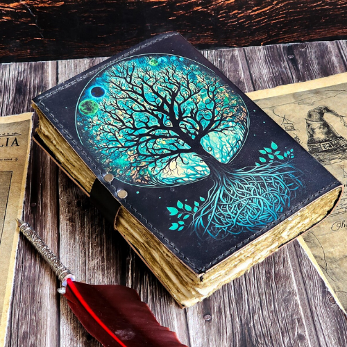 5x7 Handmade Leather Spell Book Journal Tree of Life & Moon Phase Printed Diary Travel Notebook Gift for Women