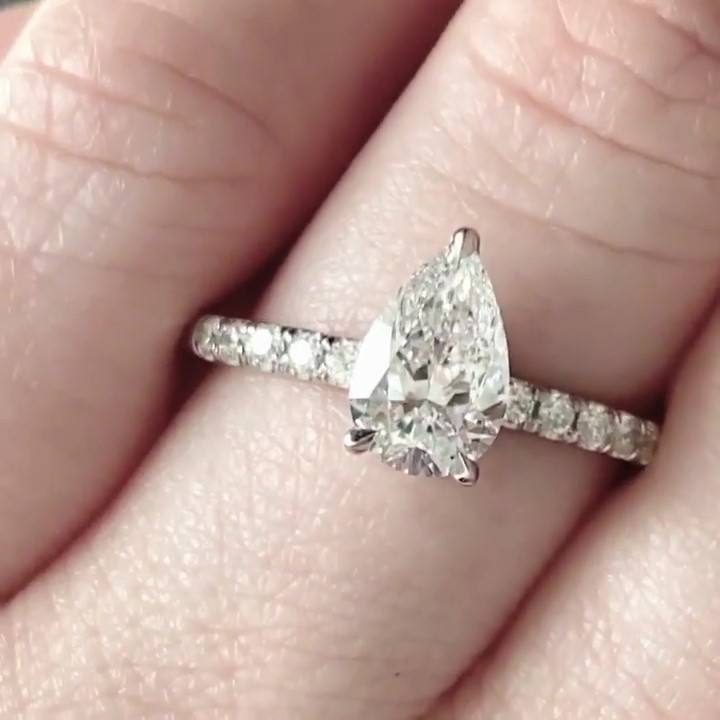 5x8มม. ลูกแพร์ตัด Moissanite แหวนหมั้นที่มีปูด้านข้างหินในการตั้งค่าง่าม | เครื่องประดับเจ้าสาวแต่งงานที่ดี