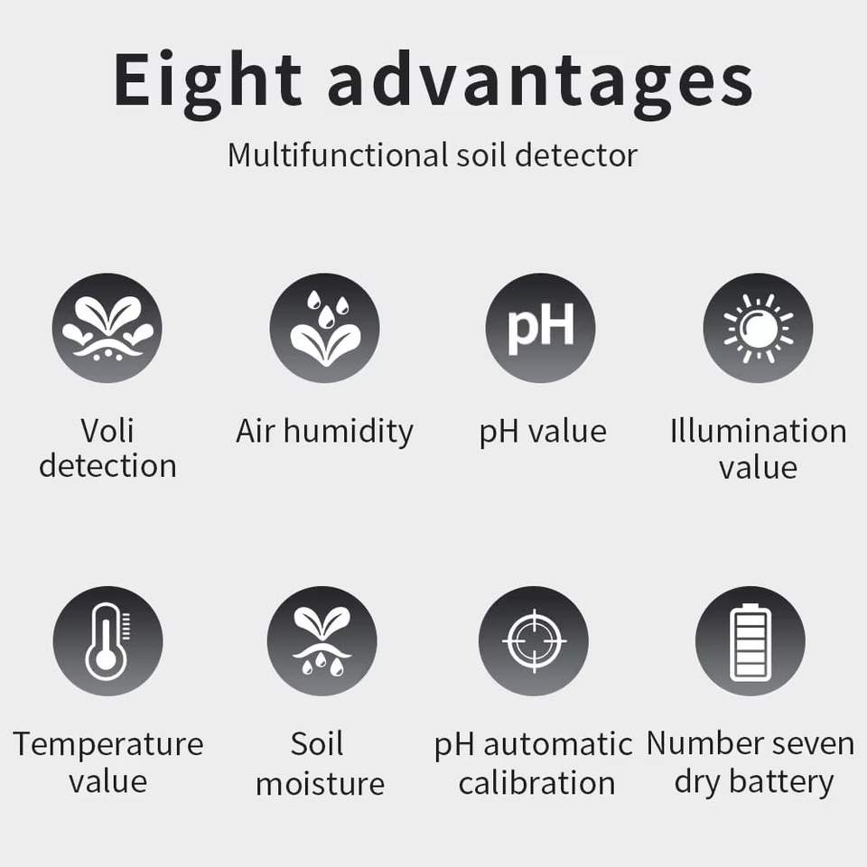 เครื่องวัดดินอัจฉริยะ 6 in 1 สำหรับวัดความอุดมสมบูรณ์/ค่า pH/ความชื้น/อุณหภูมิ/แสงแดด/ความชื้นในอากาศ เครื่องวัดดินสำหรับการเกษตร สวนเกษตรกร สีสันสดใส