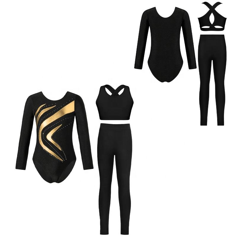 ชุดเต้นรำบอลรูมสำหรับเด็กผู้หญิงอายุ 6-14 ปี ชุดลีโอตาร์ดเมทัลลิกพร้อมเสื้อกั๊กและเลกกิ้งสำหรับยิมนาสติก ฟิกเกอร์สเก็ต และการเต้นรำ
